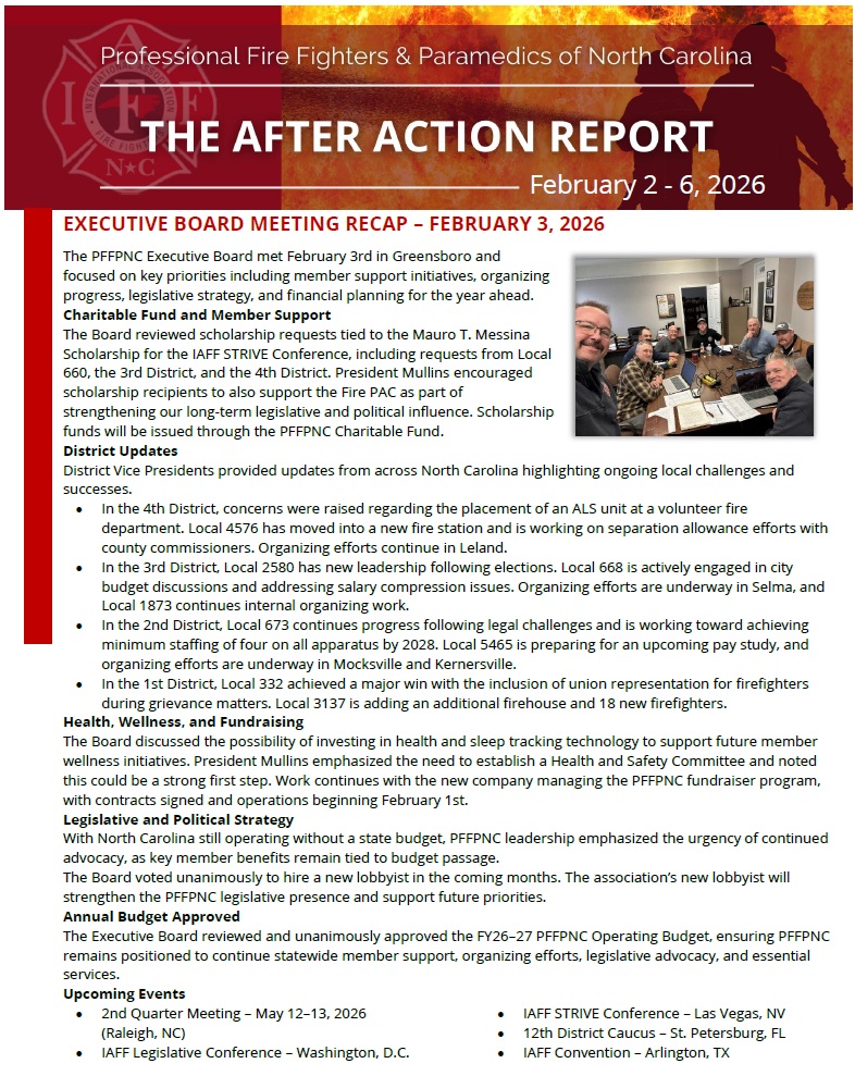 The PFFPNC newsletter for January 26–30 is now posted and highlights a historic win for labor rights in North Carolina as Asheville becomes the first municipality in the state to guarantee union representation for city employees during grievance hearings. This edition spotlights the leadership of Asheville Local 332 and the unanimous City Council vote that codified this protection into law, marking a significant step forward in a state with deeply restrictive labor policies.